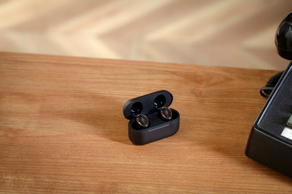 باکس 1more TWS ANC را تصور کنید ولی با رنگ تیره ترو اندازه کوچکتر(حدود اندازه Colorbuds)که به راحتی در جیب جای می گیرد.
