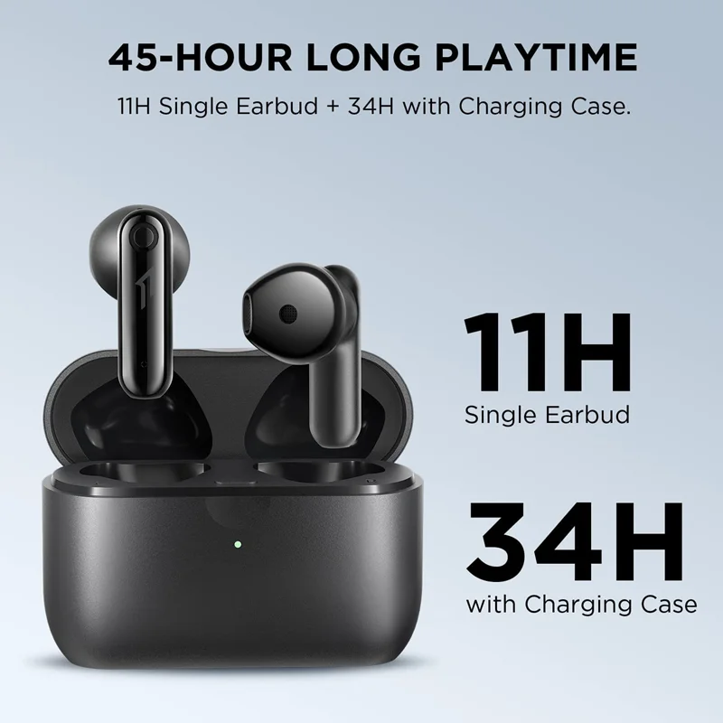 می خواهید تمام روز گوش کنید؟ با 11 ساعت عمر باتری و 34 ساعت اضافی با جعبه شارژ، تا 45 ساعت زمان گوش دادن دارید. شما می توانید کارهای زیادی را در 45 ساعت انجام دهید. پرواز از سنگاپور به نیویورک و بازگشت، با وقت خالی.