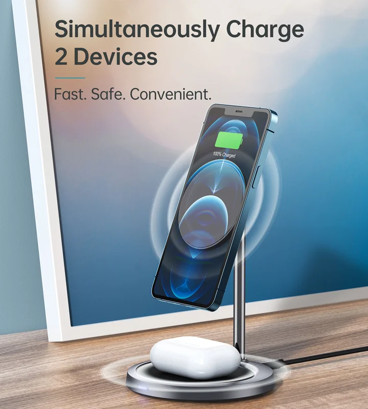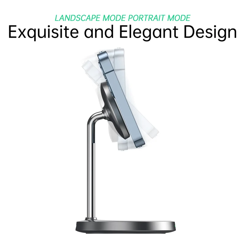 کافیست iPhone خود را روی این پایه شارژر بی سیم مغناطیسی قرار دهید ، فناوری Magnetic به طور خودکار می تواند شارژ دقیق و کارآمد را تنظیم کند.ایرپاد های خود را روی صفحه شارژ پایین قرار دهید و از تجربه شارژ سریع و همزمان لذت ببرید. آیفون 13 و 12 از 7.5 وات شارژ سریع و 2.5 وات برای ایرپاد پشتیبانی می کند. قرارگیری افقی و عمودی ، باعث راحتی بیشتر می شود.