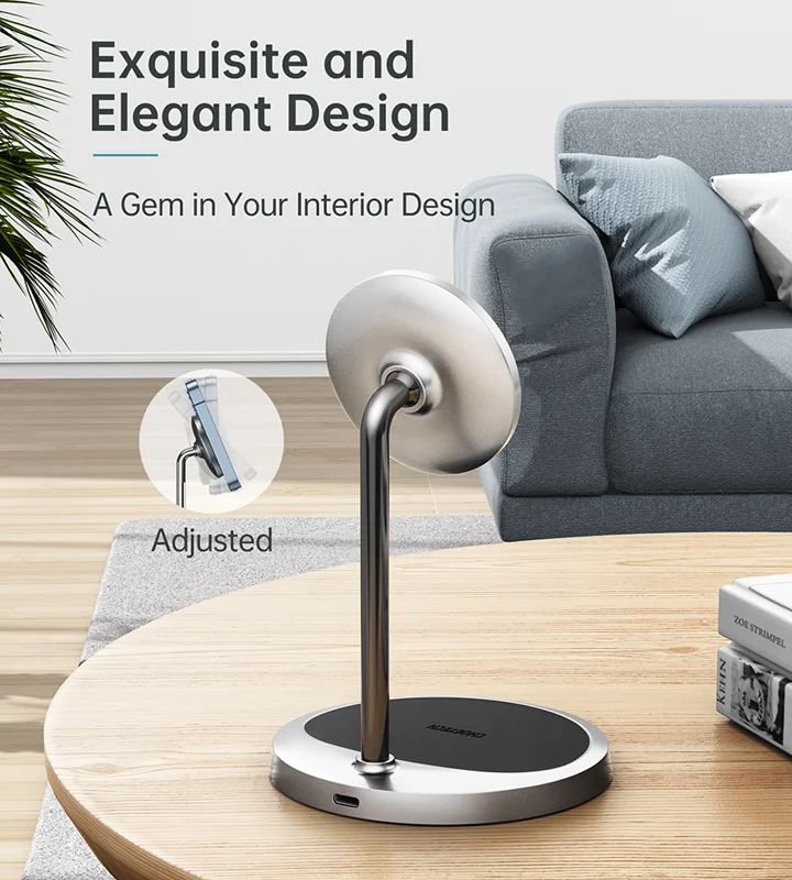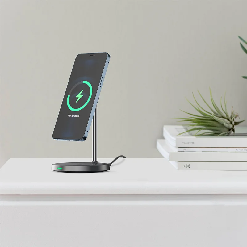 این استند شارژر مغناطیسی آیفون تنها از شارژ آیفون 12/12 Pro/12 Pro Max/12 mini و 13/13 Pro/13 Pro Max/13 mini و سری آیفون 14 ایرپاد/ایرپادز پرو/سامسونگ بدون اتصال کابل اضافی پشتیبانی می کند.