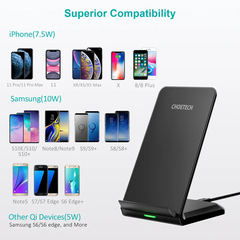 پشتیبانی از 10W حداکثر شارژ Samsung Galaxy S9، S9 Plus، Note 8، S8، S8 Plus، S7، S7 Edge، S6 Edge +، Apple iPhone X، 8، 8 Plus در 7.5W.
