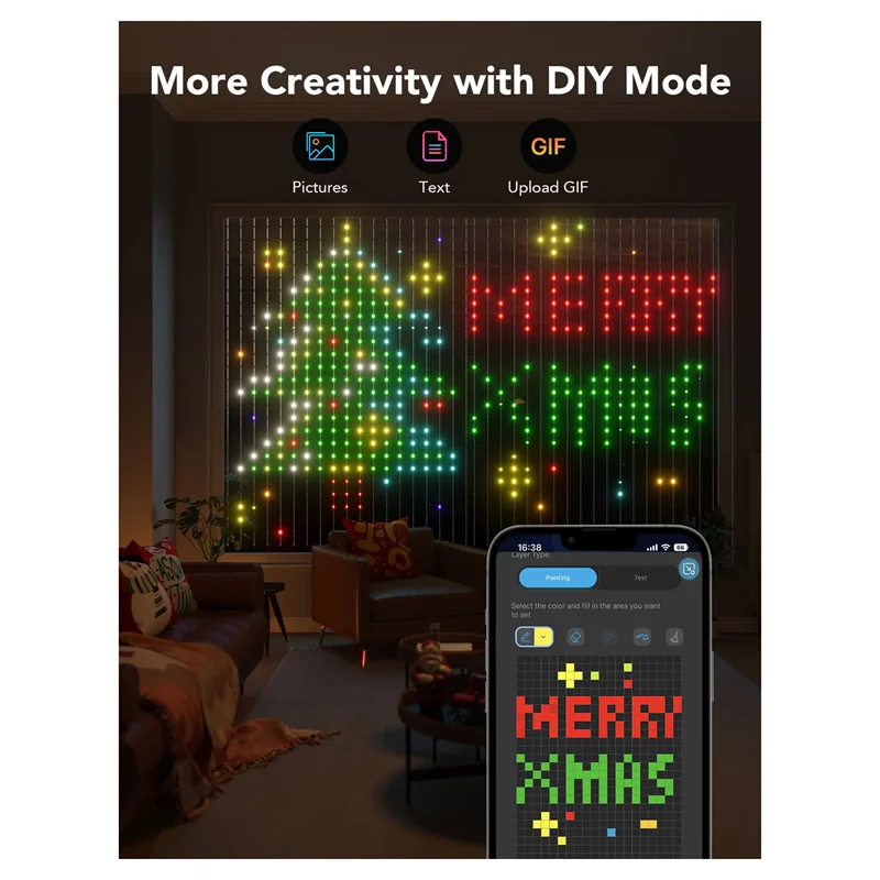 با چراغ های پرده ای Govee RGBIC یک نمایش نوری خیره کننده را کشف کنید. با 520 LED، می توانید جلوه های نوری پویا ایجاد کنید و نمایش نور DIY خود را سفارشی کنید. با این چراغهای خیرهکننده، حس خاصی را به هر عصری اضافه کنید.