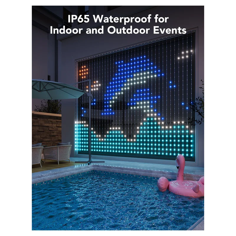 چراغ های پرده و جعبه کنترل دارای رتبه IP65 هستند در حالی که آداپتور دارای رتبه IP44 است. قابل استفاده در داخل ساختمان (اتاق خواب، اتاق نشیمن، اتاق بازی، پرده، و غیره) و در فضای باز (پاسیو).