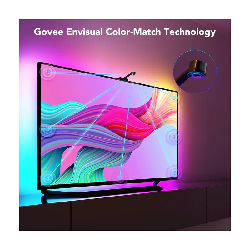 دوربین Govee Envisual ما بهطور هوشمند رنگهای روی صفحه تلویزیون شما را شناسایی و ضبط میکند و سپس بهطور خودکار روی نور پسزمینه شما اعمال میشود. دنیای بازی خود را فراتر از چهار گوشه صفحه تلویزیون خود گسترش دهید.