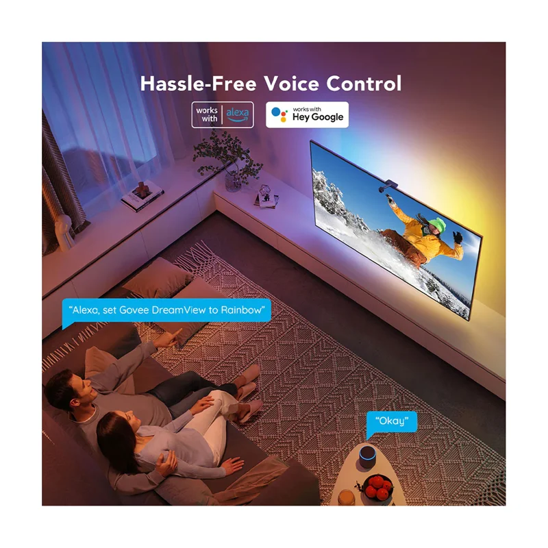 چراغ های LED خود را برای تلویزیون با دستورات صوتی ساده، از طریق الکسا و دستیار Google یا با برنامه Govee Home مدیریت کنید. از دسترسی به رنگها و ویژگیهای بیشتر مانند تایمر، ویدیو، DIY و حالت موسیقی لذت ببرید که به شما در ایجاد فضای مورد نیاز کمک میکند.