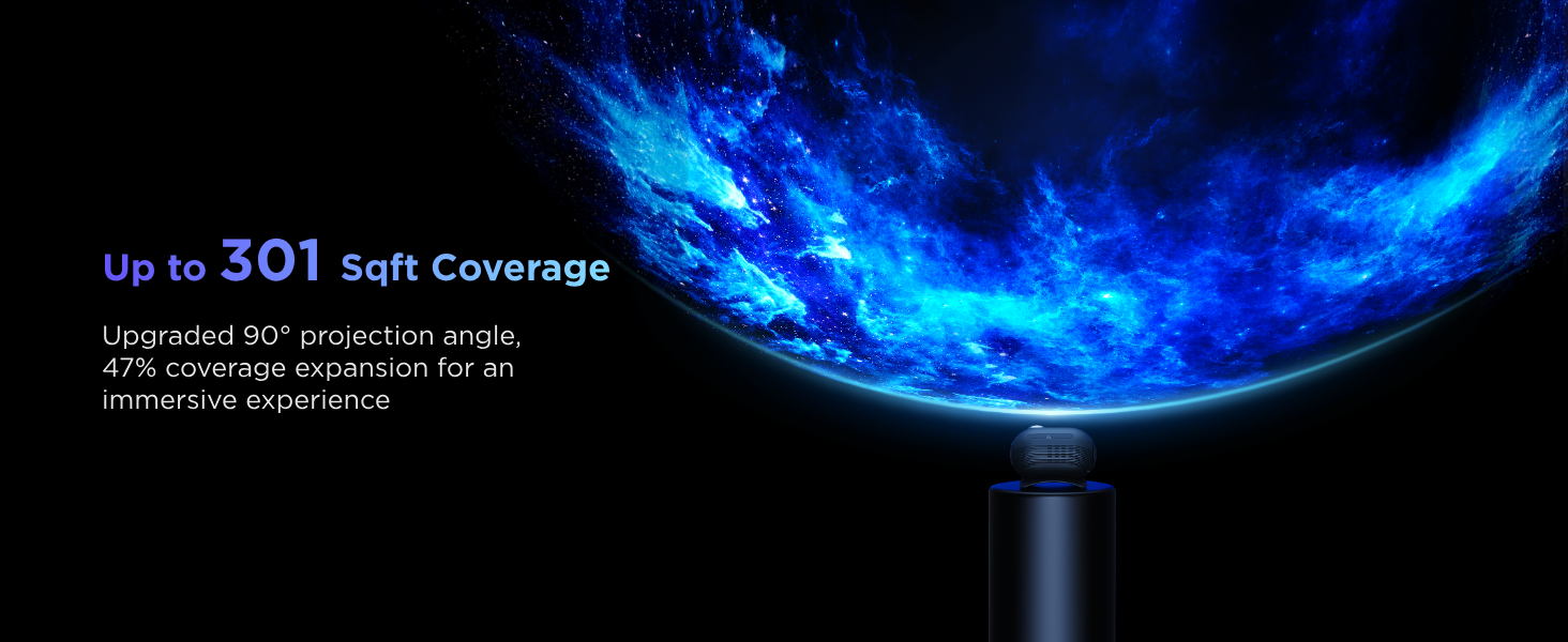 لنز بزرگشده، زاویه نمایش را ۱۲.۵٪ افزایش میدهد تا پوشش وسیعتری داشته باشد. این پروژکتور نور شب تا ۳۰۱ فوت مربع را روشن میکند، که به عنوان یک پروژکتور آسماننما برای دکوراسیون اتاق خواب یا هدیه ایدهآل است.