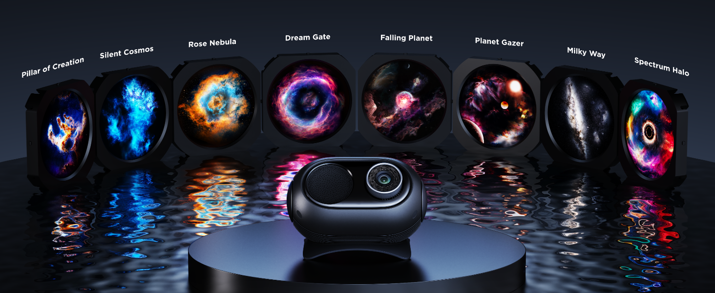 این پروژکتور فضایی دارای ۸ دیسک فیلم، ۲۱+ گزینه نویز سفید و ۲۰+ صحنه است که از بیش از ۳۲۰۰ ترکیب مختلف برای رفع نیازهای مختلف استفاده پشتیبانی میکند. مناسب برای رصد ستارگان، آسماننماها، خواب و مدیتیشن