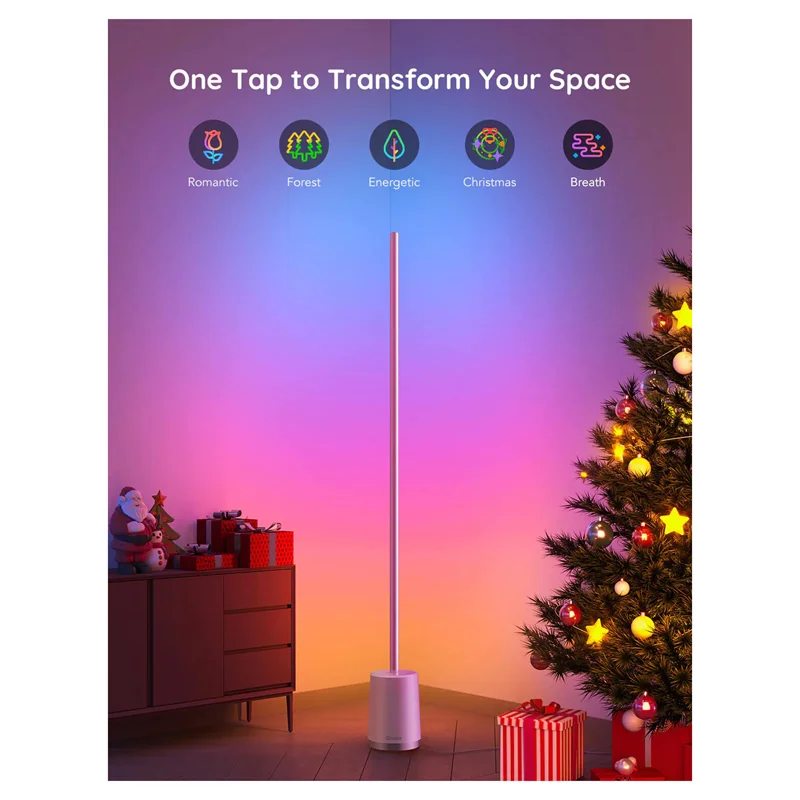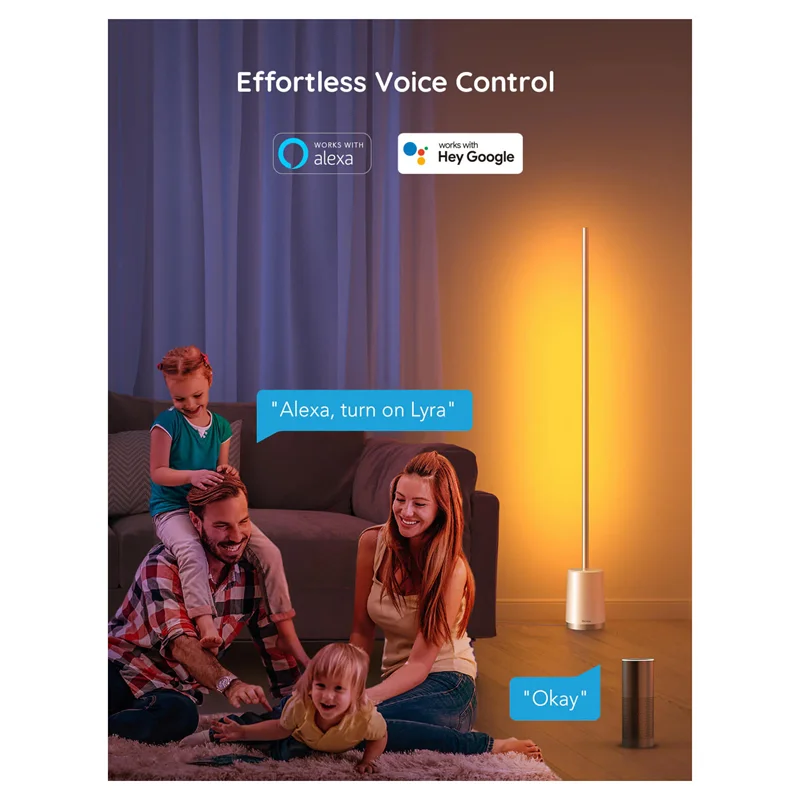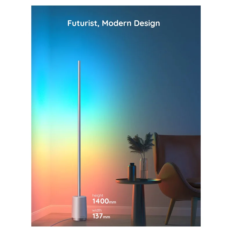 اندازه لامپ گوشه ای در حدود 1450 میلی متر در 137 میلی متر است و با کنترل هندزفری از طریق Wi-Fi، می توانید زمان بیشتری را برای انجام کاری که دوست دارید صرف کنید. با استفاده از الکسا یا دستیار گوگل، رنگ ها و جلوه های چراغ های LED خود را تغییر دهید.