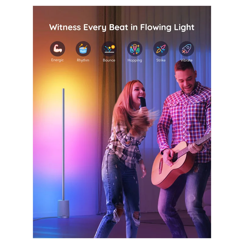 با میکروفون داخلی چراغ کف Lyra، یکی از 6 حالت موسیقی را تنظیم کنید و از جهش نور، جریان و رقصیدن نور با آهنگ موسیقی مورد علاقه خود لذت ببرید.