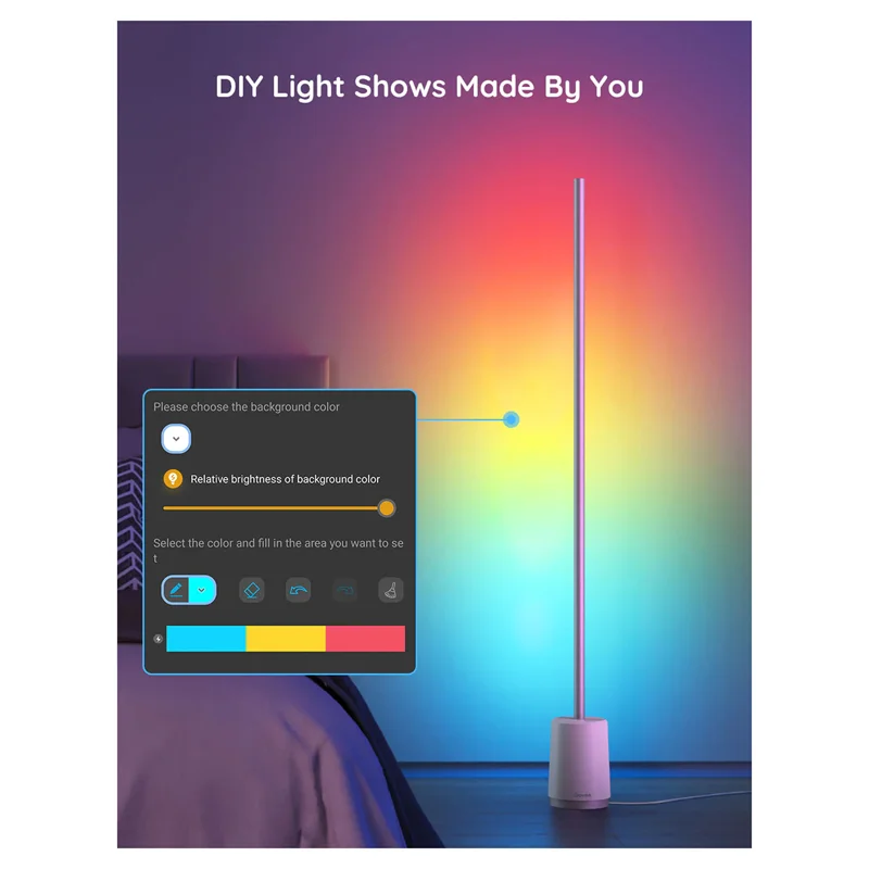 با استفاده از برنامه Govee Home، جلوه رنگ سفارشی خود را با انگشت ترسیم کنید، به علاوه این خلاقیتها را به جامعه نشان دهید تا دیگران بتوانند جلوههای DIY شما را به نور خود اضافه کنند. چراغ کف برای اتاق خواب مناسب است.