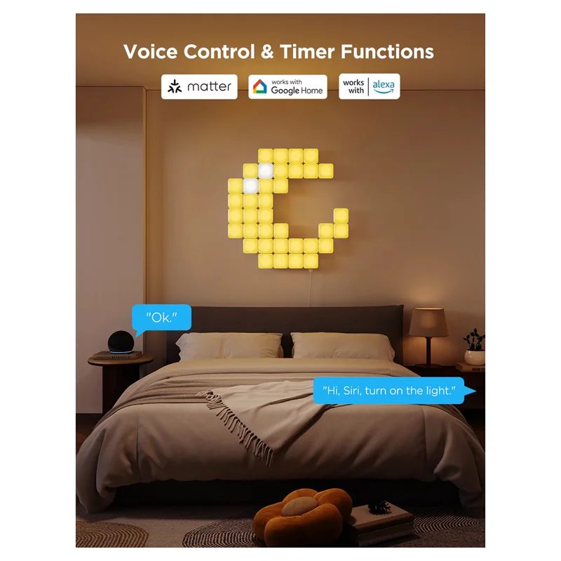 سازگار با Matter، Google Assistant و Alexa، این چراغهای پنل LED به شما امکان میدهند نور را فقط با صدای خود تنظیم کنید و هر فضا را به محیطی مسحورکننده و متناسب با روحیه و فعالیتهای شما تبدیل کنید.