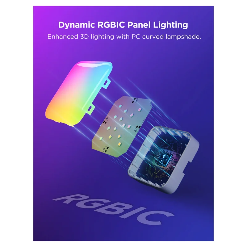 آباژور شفاف PC خمیده به پانل های دیواری LED یک سبک سه بعدی پویا می بخشد و فناوری RGBIC رنگ های زنده لامپ را با یک تراشه مستقل ارائه می دهد.