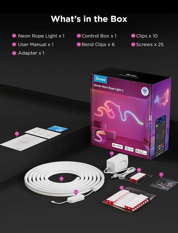 به راحتی نورپردازی خود را از طریق Govee Home App، Matter، Alexa یا Google Assistant تنظیم کنید. لطفا توجه داشته باشید که این چراغ از وای فای 5G پشتیبانی نمی کند.