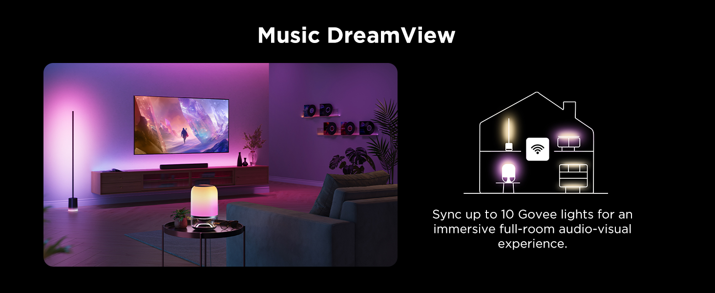 با Music DreamView، تجربه غوطهوری خود را در کل اتاق گسترش دهید و از همگامسازی با حداکثر ۱۰ چراغ Govee دیگر پشتیبانی کنید. از طریق ریتم و پویایی رنگ هماهنگ، لذت شنیداری و بصری را افزایش دهید.