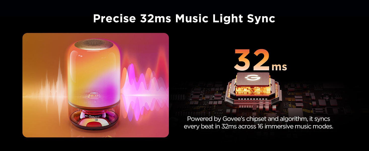 این چراغ رومیزی هوشمند با چیپست و الگوریتم یکپارچه Govee، زمان پاسخگویی چشمگیر 32 میلیثانیه را ارائه میدهد و هر ضرب آهنگ را برای یک همگامسازی دقیق ضبط میکند. 16 حالت موسیقی، یک تجربه صوتی و تصویری کاملاً فراگیر را ارائه میدهند.