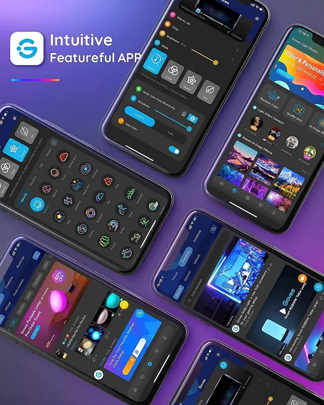 با استفاده از برنامه Govee Home، میتوانید روشنایی را تنظیم کنید، رنگها را تغییر دهید و به راحتی از حالت موسیقی استفاده کنید. چراغهای LED تلویزیون با بلوتوث سازگار هستند.