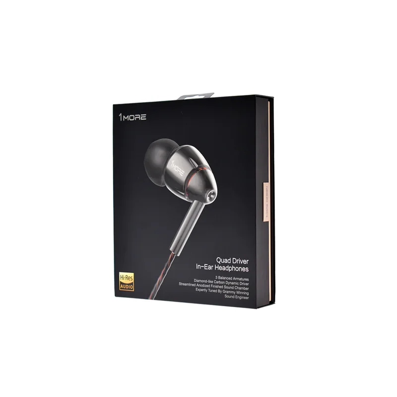 هدفون 1MORE Quad Driver In-Ear دارای چهار درایور است که معادل داشتن چهار بلندگو در هر گوش است که منحصراً به بلندی های ابریشمی، میانی های دقیق و بیس عمیق اختصاص داده شده است. یک محرک کربنی الماس مانند به همراه 3 آرماتور متعادل، قدرت دینامیکی بینظیری را ارائه میکند، و احساسی جادار ایجاد میکند که چیزی بین شما و موسیقی شما وجود ندارد. محفظههای صدای آلومینیومی کارآمد برای راحتی عالی و فضای صوتی طراحی شدهاند.