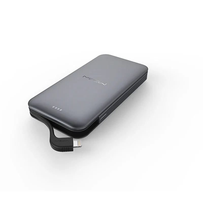 دارای یک درگاه خروجی USB و یک کابل لایتنینگ متصل شده به بدنه
