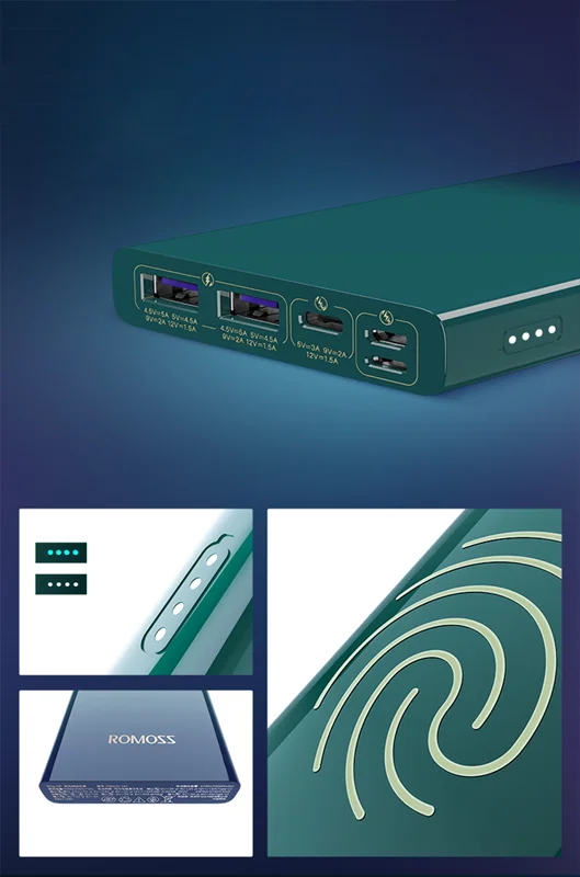 در دو طرف ، یک کلید لمسی با تشخیص اثر انگشت یکپارچه و دو حالت نشانگر LED (شارژ سریع نور آبی یخ ، نور سفید شارژ معمولی) چیده شده است. این سوئیچ لمسی به ویژه قابل ذکر است. من تشخیص اثر انگشت را در تلفن های همراه بسیار دیده ام و برای اولین بار در پاور بانک ها آن را دیده ام. کلید لمسی ، میزان جذب گرد و غبار را کاهش می دهد .