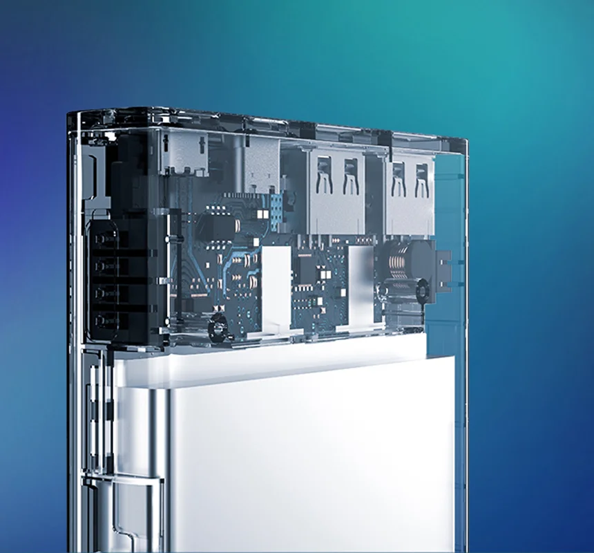 فویل فلزی مسی در هر دو طرف پوسته متصل می شود و پد حرارتی سفید روی صفحه مدار متصل است. گرما از طریق پد حرارتی به فویل مسی منتقل می شود. حرارت تولید شده در آن زمان ، دمای پاوربانک را در سطح معقولی کنترل می کند.